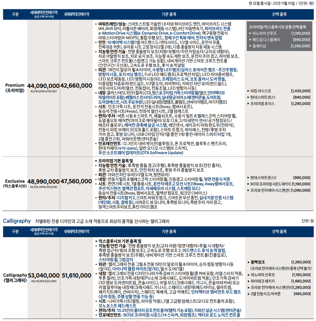 싼타페 풀체인지 신형 MX5 하이브리드 가격표 공개