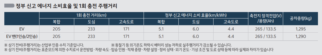 기아 레이 전기차 EV 제원 연비 1회 운행거리