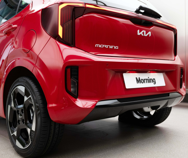 측면부에서는 휠이 돋보입니다. 모닝의 휠은 디지털 그래픽을 떠올리게 하는 등 미래적인 이미지를 구현했습니다. 후면부는 하단 범퍼 반사등과 수직으로 이어지는 듯한 테일램프가 깔끔하고 안정적인 디자인을 완성합니다.