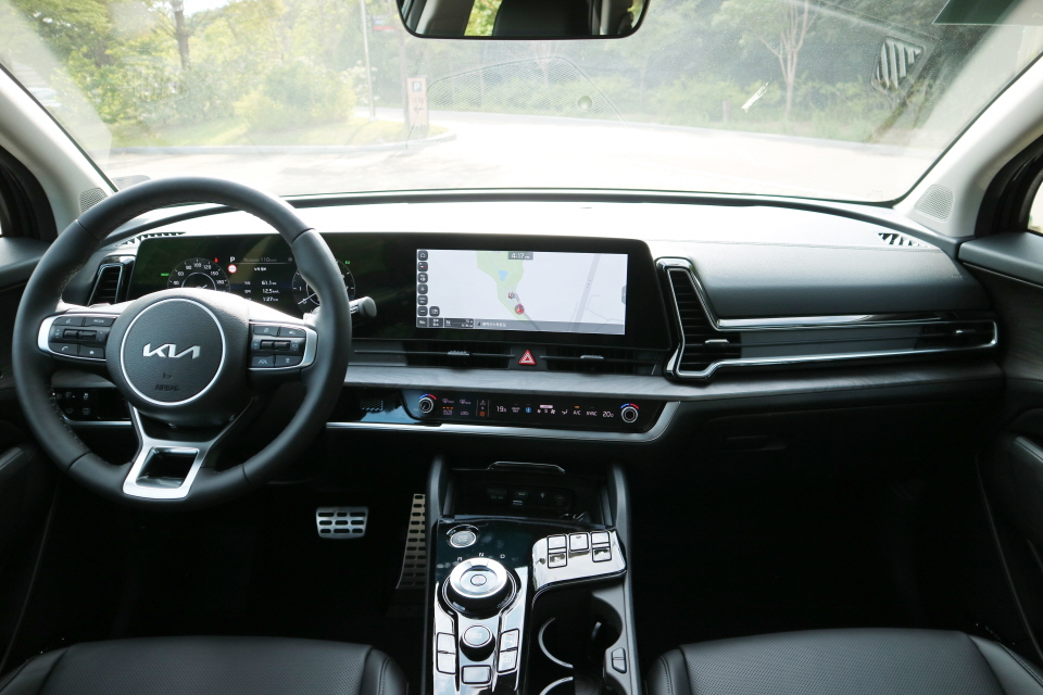 시동을 걸면 고요한 편이라는 평가입니다. 1.6L 가솔린 터보 엔진과 6단 자동변속기 그리고 전기모터와 배터리 조합으로 엔진의 최고출력은 180마력, 최대토크는 27.0kg.m인데 여기에 최고출력 44.2kW와 최대토크 264NM의 힘을 대는 전기모터가 힘을 보탰다고 보시면 됩니다. 준중형 SUV로 분류되는 스포티지로서는 충분하다는 평가입니다.