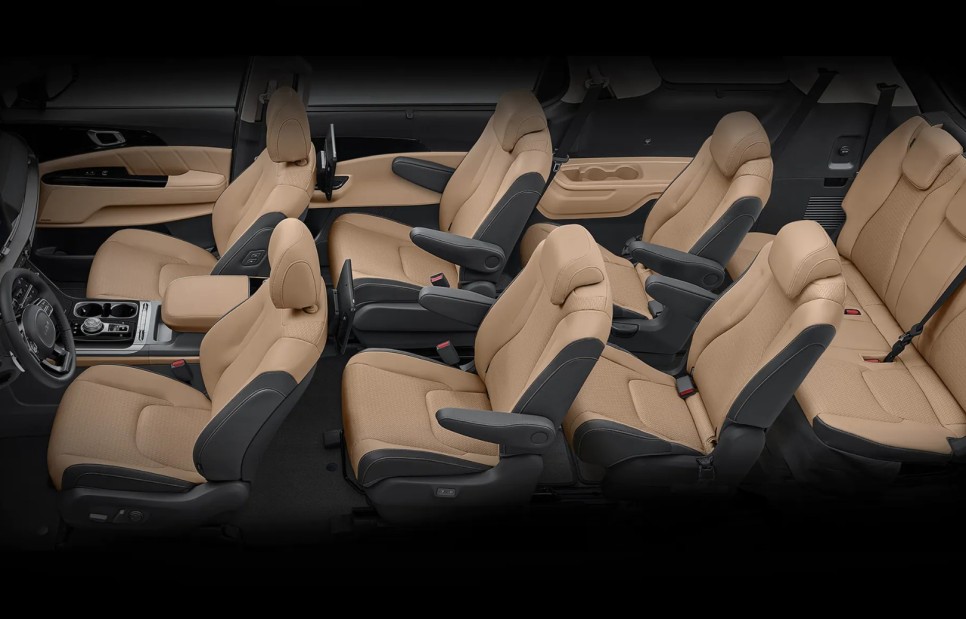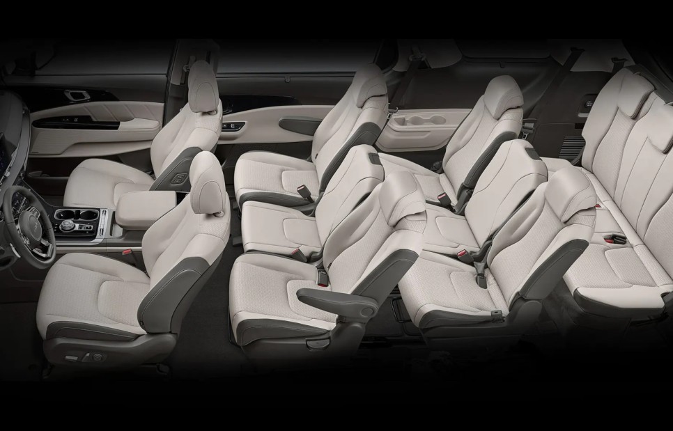 ▶ 7인승 : 넉넉한 공간이 매력적입니다. 카니발 7인승의 경우 2+2+3 구성의 시트 배열을 갖는데 그 중 2열 승객석의 경우 여유로운 시트의 크기를 바탕으로 레그 서포트, 안락한 기능성 헤드레스트, 큰 폭의 슬라이딩을 통해 공간 확보를 최대화 했습니다. 3열 좌석 역시 넉넉한 공간을 제공하고, 4열까지 구성된 9인승과 11인승 대비 편리하고 짐을 싣기 용이하다는 장점이 있는데요, 단점은 차량 가격이 상대적으로 비싸고 9인승 이상에 허용된 버스전용차로를 달리지 못한다는 점, 10인승 이상 승합차가 누릴 수 있는 저렴한 자동차세혜택도 받을 수 없다는 것 등을 들 수 있습니다.