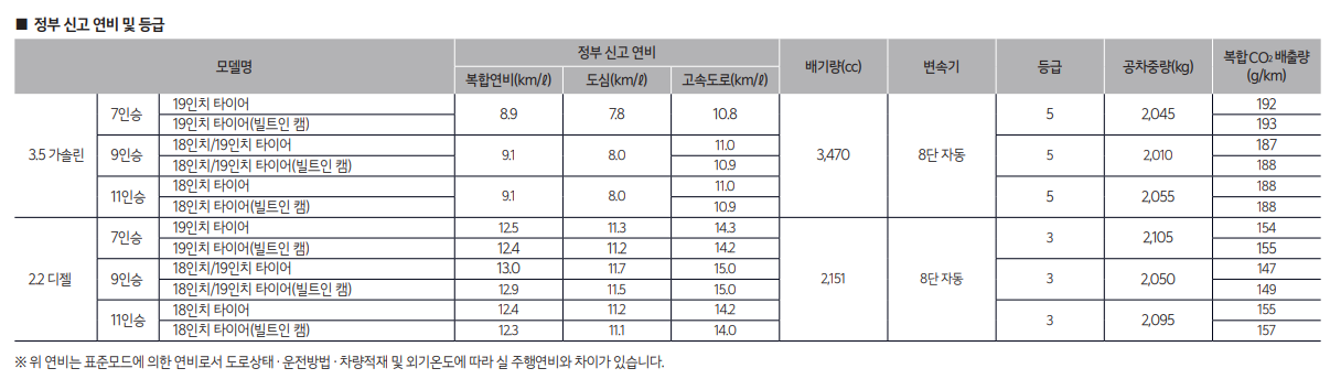 ● 9인승 3.5 가솔린 3,180~4,010만원