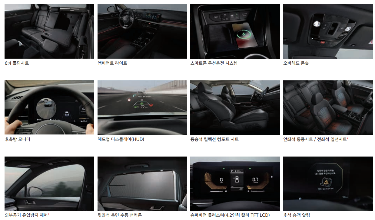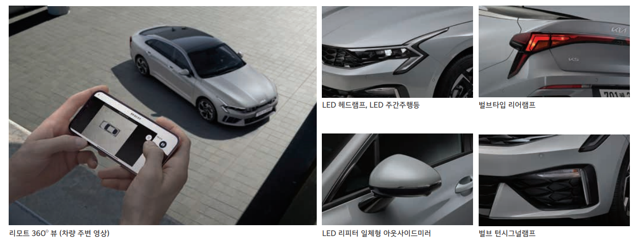 또한 무선(OTA) 소프트웨어 업데이트와 인포테인먼트 시스템으로 영상, 음원 콘텐츠를 즐길 수 있는 '스트리밍 플러스'를 K5에 적용했는데 뿐만 아니라 디지털 키 2, 빌트인 캠 2, e 하이패스, 지문 인증 시스템, 진동 경고 스티어링 휠, 에어컨 애프터 블로우, 측방 주차 경고가 더해졌습니다.