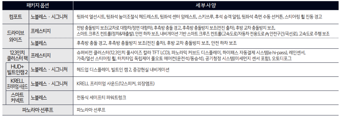 또 차체와 앞유리가 만나는 부분의 소재를 보강하고 후륜 멤버 충격 흡수 부품과 전륜 멤버의 소재를 최적화해 지면에서 차량으로 전달되는 로드 노이즈를 감소시켰으며, 이중접합 차음 유리를 기존 앞유리 및 앞좌석에서 뒷좌석까지 확대 적용함으로써 정숙성을 높였습니다.