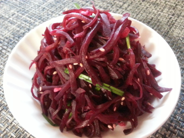 이 밖에 비트 효능을 잘 살리면서 먹기 위해서는 스프, 조림, 샐러드, 피클, 볶음, 야채주스 등의 스무디, 케이크 등으로 먹는 방법이 있는데요, 비트 하나에 무, 감자 등을 채 썰어서 각각 소금을 약간 넣어 잘 볶으면 야채볶음을 만들 수 있습니다.