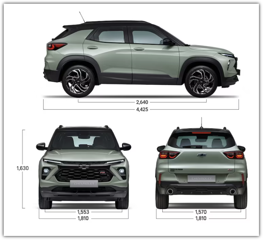 쉐보레 트랙스 크로스오버가 엔트리 모델이라면 트레일블레이저는 정통 SUV라고 볼 수 있습니다. 따라서 쉐보레 트레일블레이저는 보다 주행성능 구현하는 데 신경을 썼다는 평가입니다. 또한 넓은 휠베이스로 넉넉한 실내공간을 확보했다고 하는데요, RS 기준으로 전장은 4425mm, 전고 1670mm, 전폭 1810mm, 축간거리는 2640mm입니다. 휠사이즈는 19인치로 커졌고 레그룸과 헤드룸은 비교적 여유 있는 편입니다.
