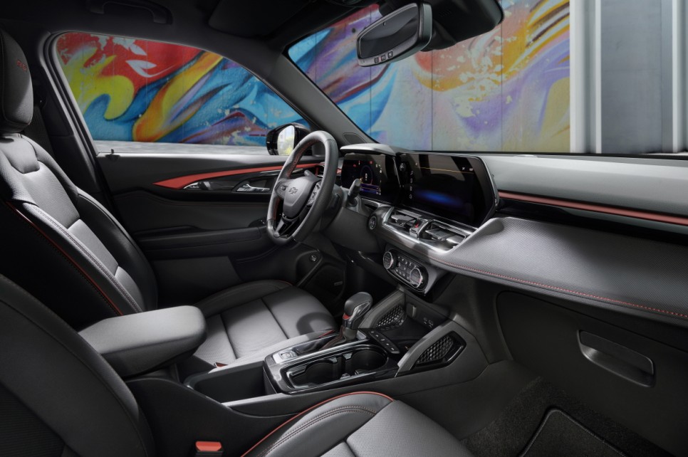 쉐보레 트레일블레이저 부분변경 전면부 디자인은 날렵한 주간주행등과 쉐보레 듀얼 포트 그릴 등 트랙스 풀체인지와 유사한 패밀리룩이 반영된 모습인데요, 보타이 엠블럼은 중앙 크로스바로 이동했으며 RS 트림과 액티브 트림에 따라 전용 그릴 패턴과 외관 컬러를 지원한다고 합니다.