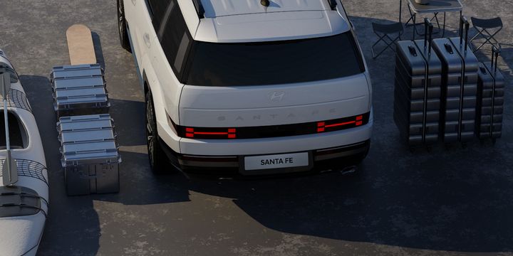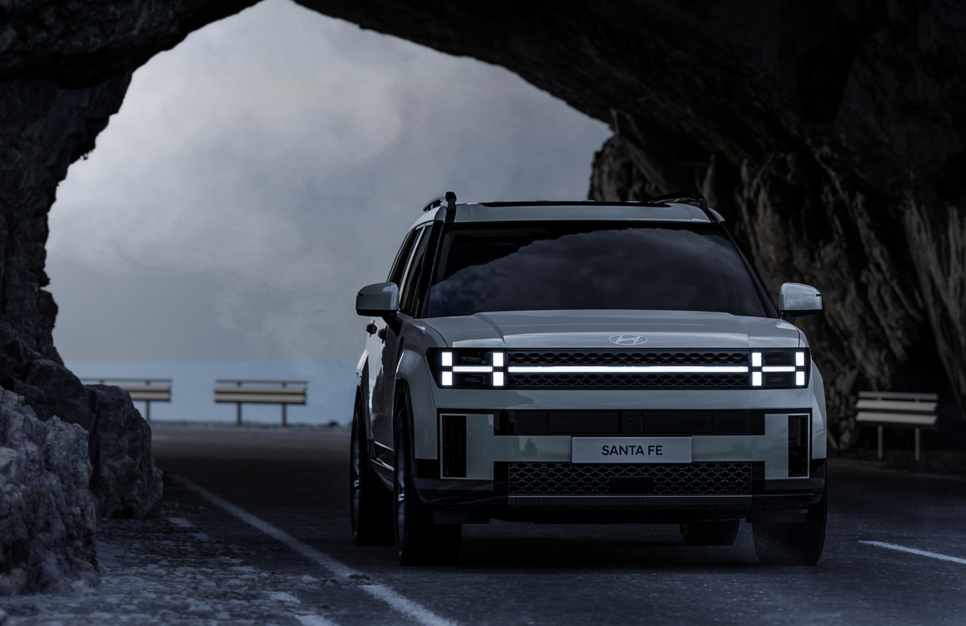 싼타페 풀체인지에는 현대차의 엠블럼을 아이코닉한 형상으로 재해석한 ‘H’ 형상의 디자인이 곳곳에 반영되었는데요, 대표적으로 ‘H 라이트’를 들 수 있습니다. 전면에는 헤드램프와 좌우 헤드램프를 수평으로 길게 연결하는 램프에 적용되었고, 리어램프에도 반영해 전면과 통일감을 주고 있습니다.