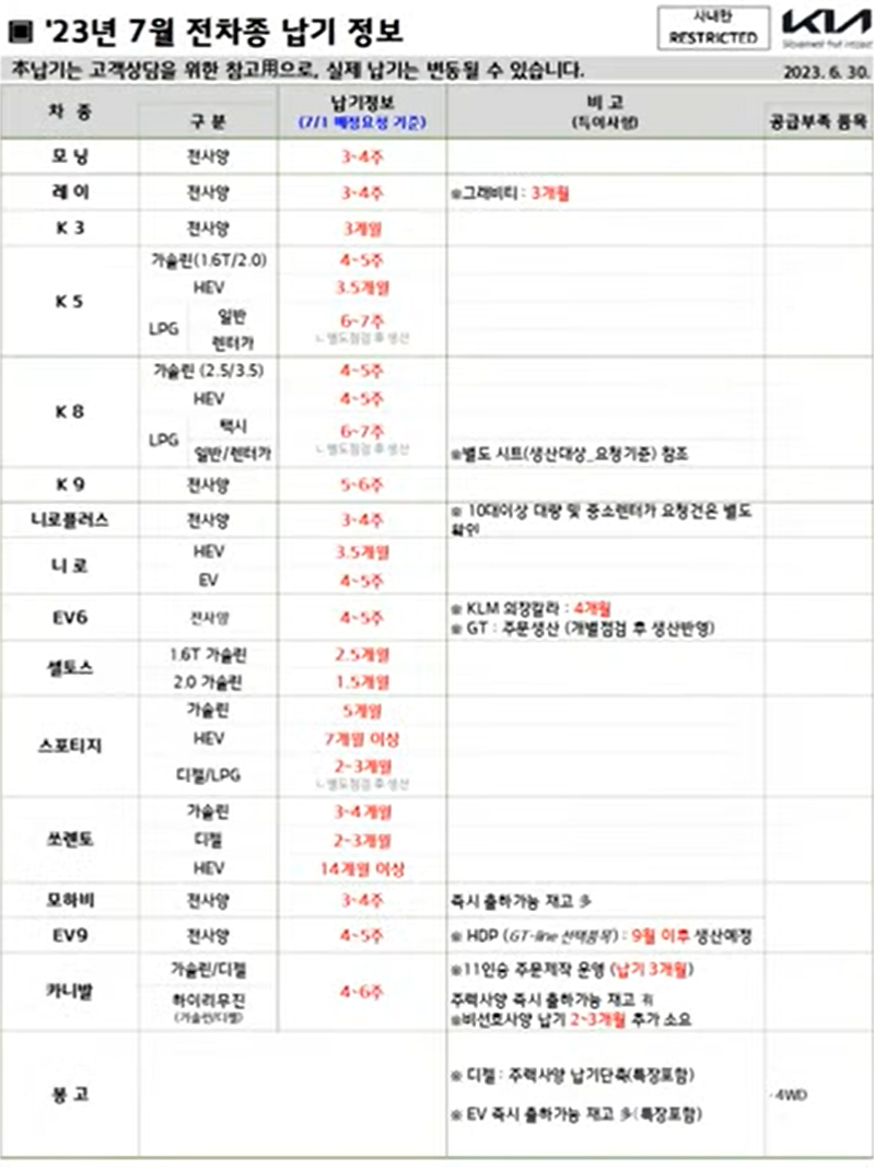2023.06.18 - [정보] - 기아 K8 하이브리드 가격표 출고 대기기간 총정리 (2023년)