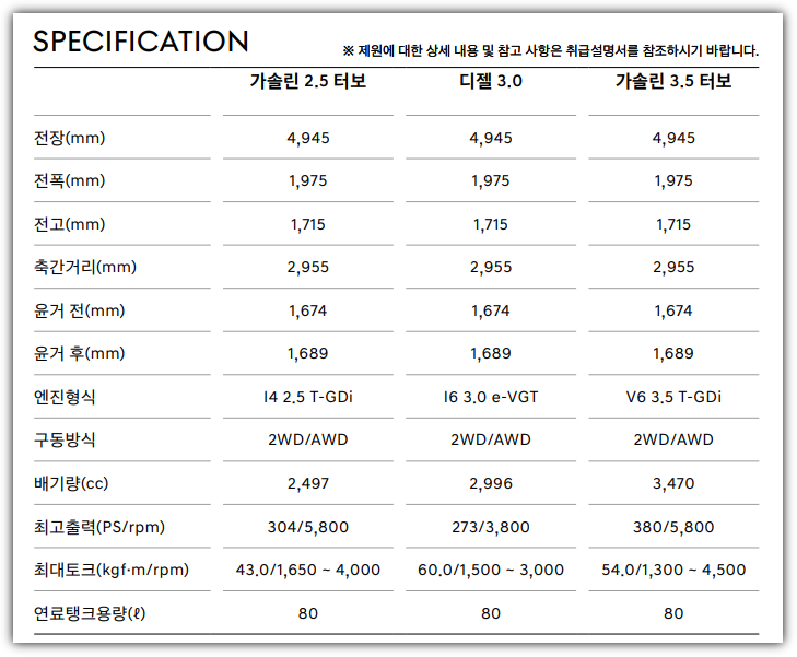 이 파워트레인은 올해 초 제네시스 G90에 처음 장착돼 부드러운 주행질감과 중저속 가속력으로 호평을 받았는데 3.5 가솔린 터보에 48V 일렉트릭 슈퍼차저(e-S/C)와 전기 모터를 장착하여 연비보다는 부드러운 주행성능과 출력 보강면에서 기존 3.5 터보보다 40마력 정도 좋아졌습니다.