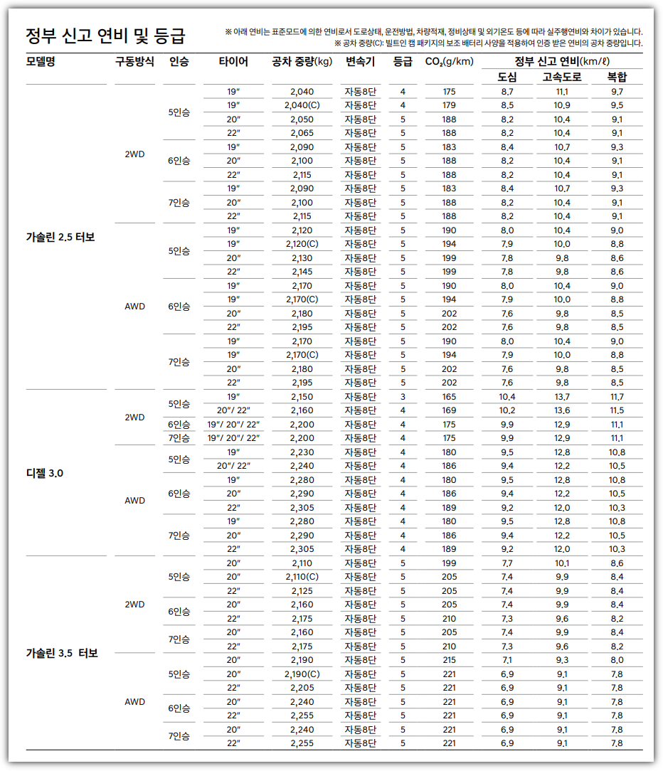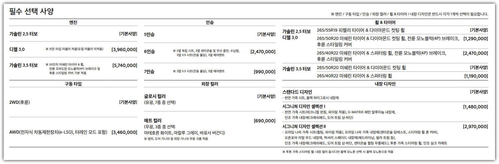 7인승 ※ 3열 5:5 시트(전동 폴딩), 3열 에어벤트 [990,000]