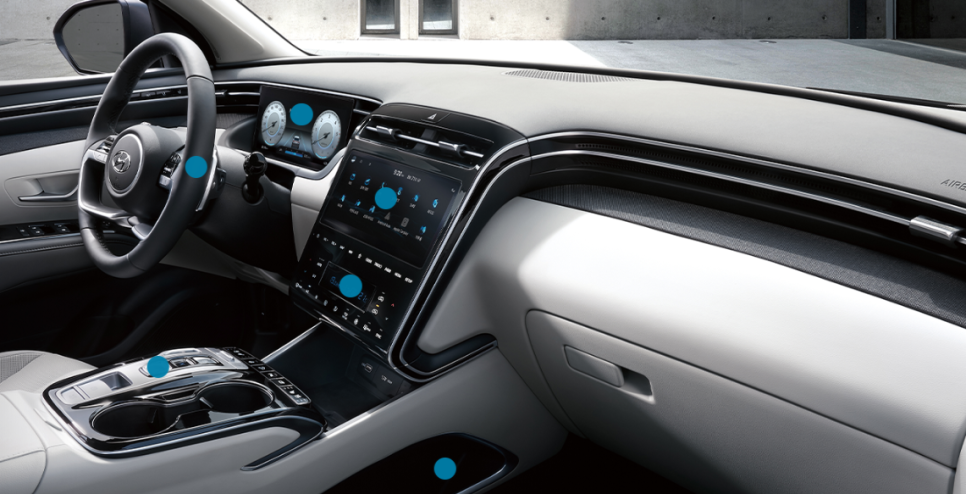 2023 투싼은 전체 트림에 신규 사양인 지능형 속도 제한 보조와 진동 경고 스티어링 휠이 기본 탑재되어 있으나 엔트리 트림 모던에는 8인치 오디오와 후방 모니터, 스마트키 등이 들어가 있고, 프리미엄에는 10.25인치 디스플레이와 블루링크, 오토 디포그, 듀얼 풀오토 에어컨 등이 기본 적용됐다는 점이 다릅니다.