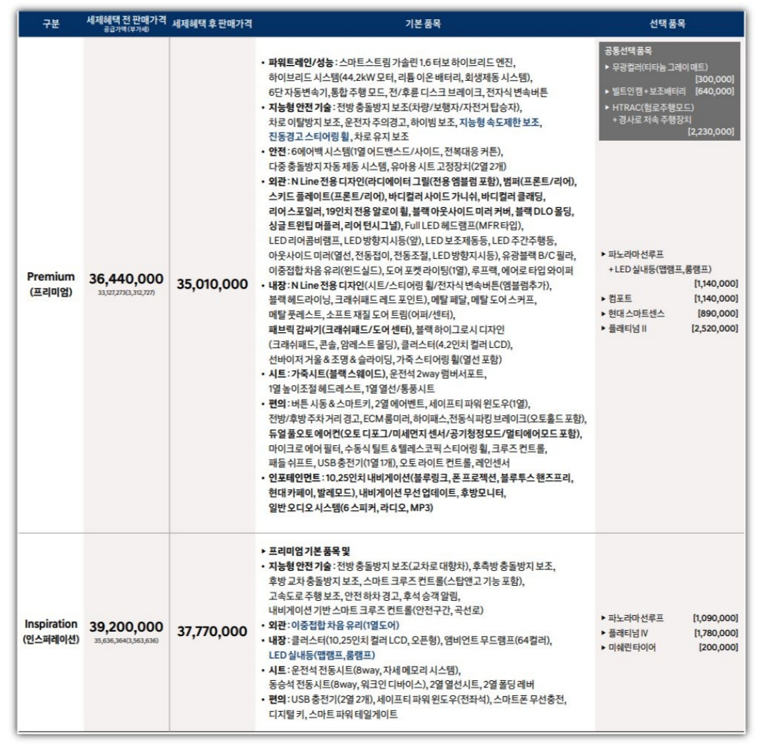 투싼 가격표 하이브리드 가격 총정리 (2024 현대 투싼 페이스 리프트)