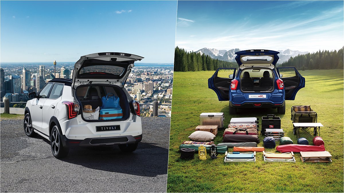 더 뉴 티볼리 에어는 준중형 SUV 수준의 넓은 적재 공간을 갖추었다고 볼 수 있는데요, 2열폴딩시 1천440ℓ의 러기지 공간과 최대 1천879mm의 길이가 됩니다. 따라서 캠핑은 물론 차박 등 아웃도어활동에도 안성맞춤이라는 평가입니다.