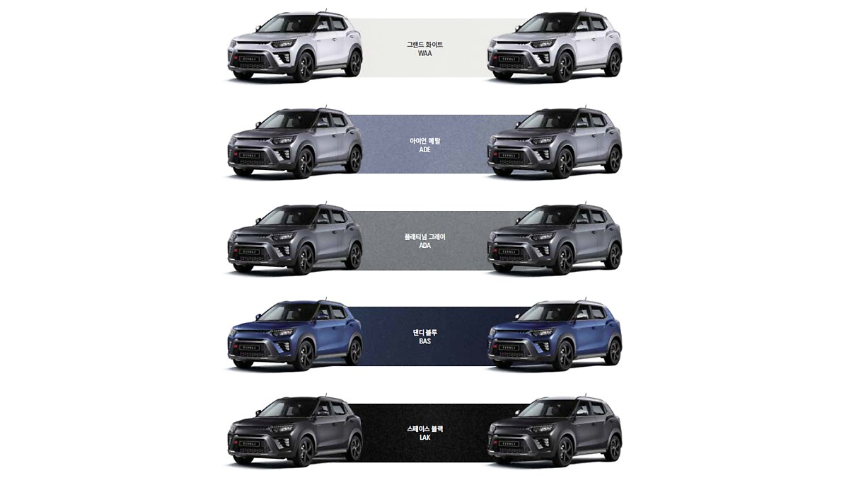 특히 소형 SUV 시장에서는 2030 세대를 아우르며 각광받은 모델이라고 볼 수 있는데요, 이번에 출시된 더 뉴 티볼리는 상품성 전반을 강화하고 가격 경쟁력을 높여 사회 초년생들이 접근하기에 더 좋아졌다는 평가입니다. 디자인 면에서는 전면부의 독특한 형상의 그릴과 비대칭 스노클을 개성있게 연출해 스포티한 이미지를 강조했는데요, 휠은 트림에 따라 16인치, 17인치, 18인치 등 세가지가 제공되며, 차체 색상은 10가지로 운영되니 참고하시기 바랍니다.