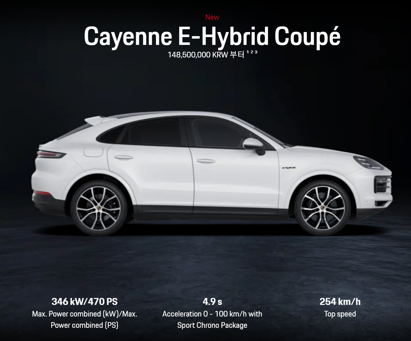 ▶ 카이엔 쿠페 하이브리드 148,500,000 KRW 부터