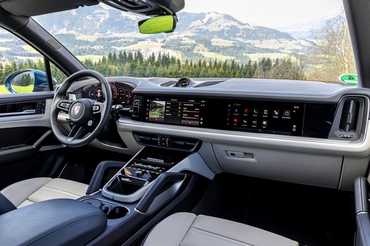 신형 카이엔에서는 새로운 인터랙티브 요소가 결합되었습니다. 우선 운전석에는 새롭게 디자인된 독립형 디자인과 가변형 디스플레이 옵션을 갖춘 12.6인치 풀 디지털 계기판이 처음 적용되었으며 최적화된 헤드업 디스플레이는 옵션 사양으로 제공합니다. 대시보드에 12.3인치 센트럴 포르쉐 커뮤니케이션 매니지먼트 (PCM)는 기본 사양으로 통합 적용되었으며 이는 다양한 차량 기능들을 제어할 수 있도록 해줍니다. 특히 스포티파이, 애플뮤직과 같은 앱의 연결성이 최적화 되었다는 점에서 긍정적인 평가를 받고 있습니다.
