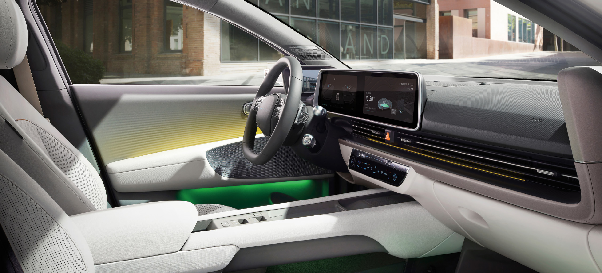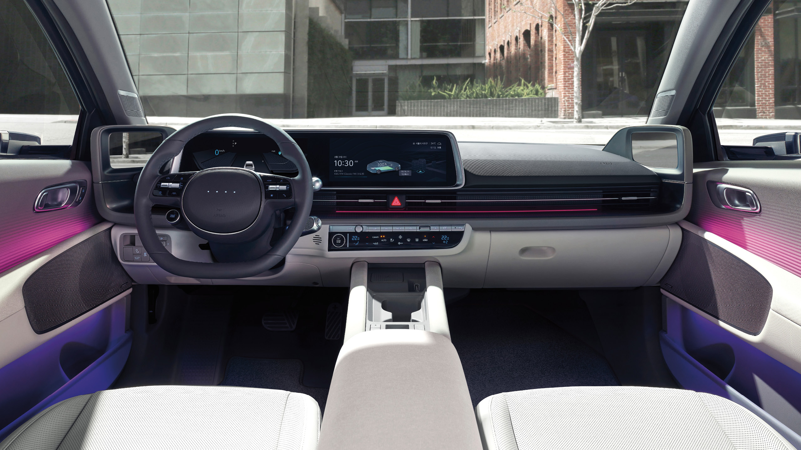 아이오닉6의 전면부 범퍼 하단에는 6개의 LED가 위치해 차량의 배터리 충전 상태를 표시하며 실내는 운전자 중심의 레이아웃입니다. 스티어링 휠 인터렉티브 픽셀 라이트, 듀얼 컬러 앰비언트 램프, 친환경 소재 등이 적용됐으며 디지털 사이드 미러 디스플레이 위치도 개선됐습니다.