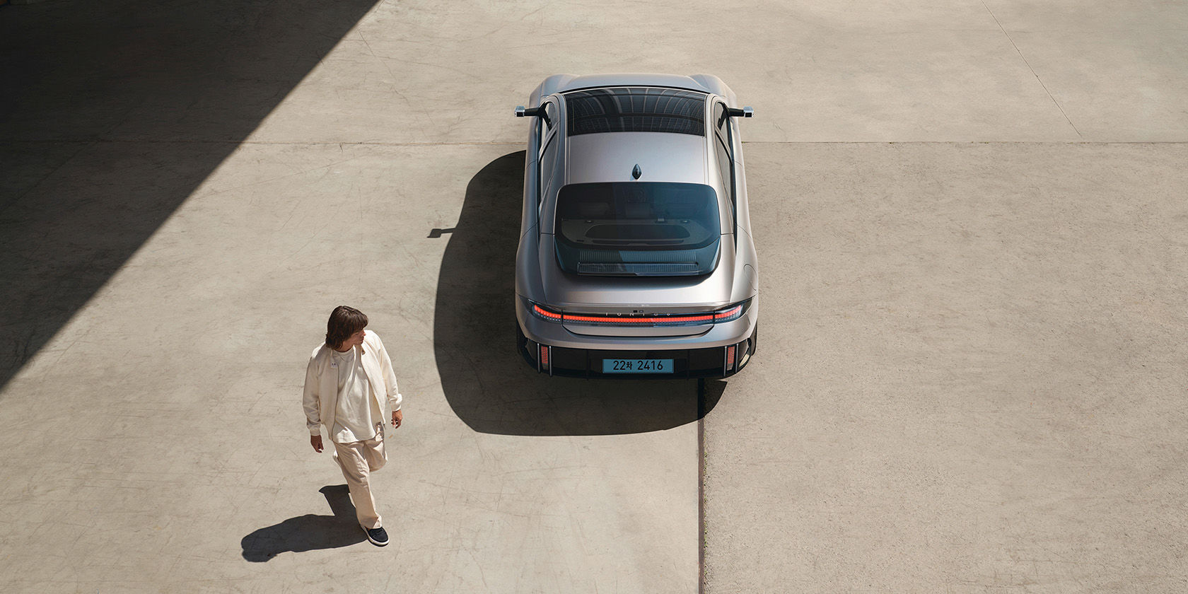 아이오닉5와 비교하면 전장은 길고 전폭은 좁은 편이며 전고는 110mm 낮습니다. 아이오닉6의 외관은 감각적인 곡선들로 완성된 유선형 실루엣을 통해 바람 저항이 최소화됐는데 아이오닉6의 공기저항계수는 0.21Cd로 벤츠 EQS(0.20) 수준이라는 설명입니다.