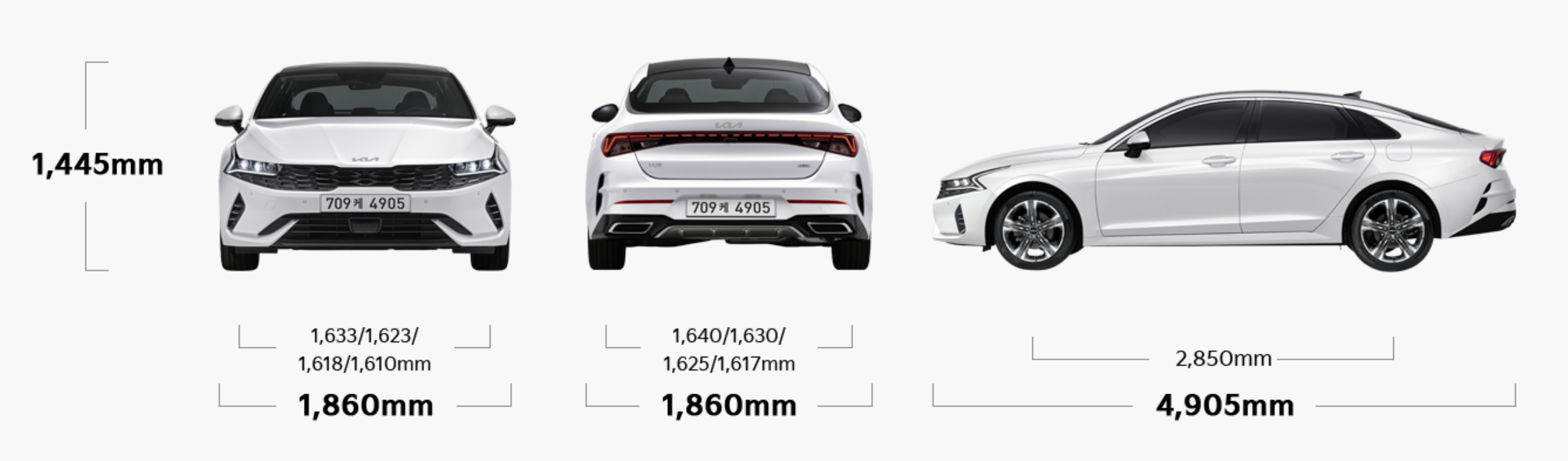 기아 K5 하이브리드 제원을 살펴보면 크기는 전장 4905mm, 전폭 1860mm, 전고 1445mm 축거 2850mm입니다. 토요타 캠리보다 전장과 축거가 각각 25mm씩 길고 실내 공간은 독일 프리미엄 세단 기준 준대형급과 비슷한 수준이라고 보시면 될 것 같습니다.