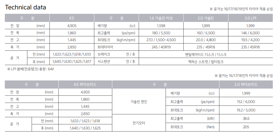 K5 가격표