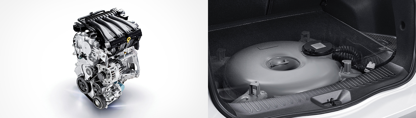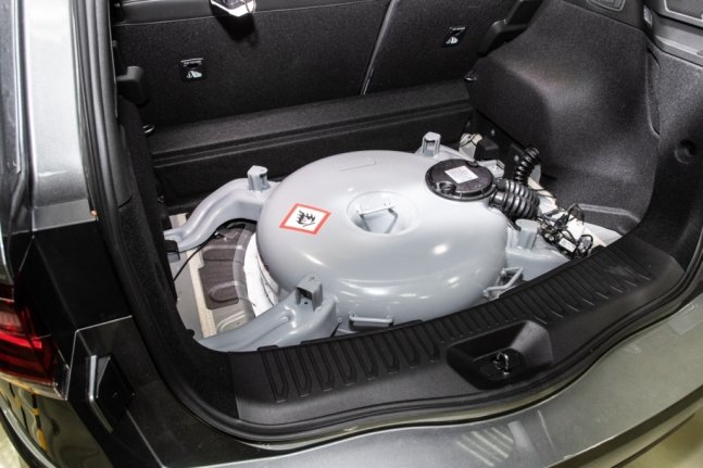 QM6 LPG 모델에는 도넛 탱크가 장착돼 있는데 안전한 LPG 차를 만들기 위해 도넛 탱크를 L자 브라켓으로 대칭 구조로 사이드 빔에 고정했다고 설명하고 있습니다. 탱크를 바닥에서 띄워 진동과 소음이 차량에 전달되지 않는 구조가 만들어지는 것인데요, 기존에 스페어 타이어 위치 아래로 탱크가 들어가 공간도 확보되어 있습니다.
