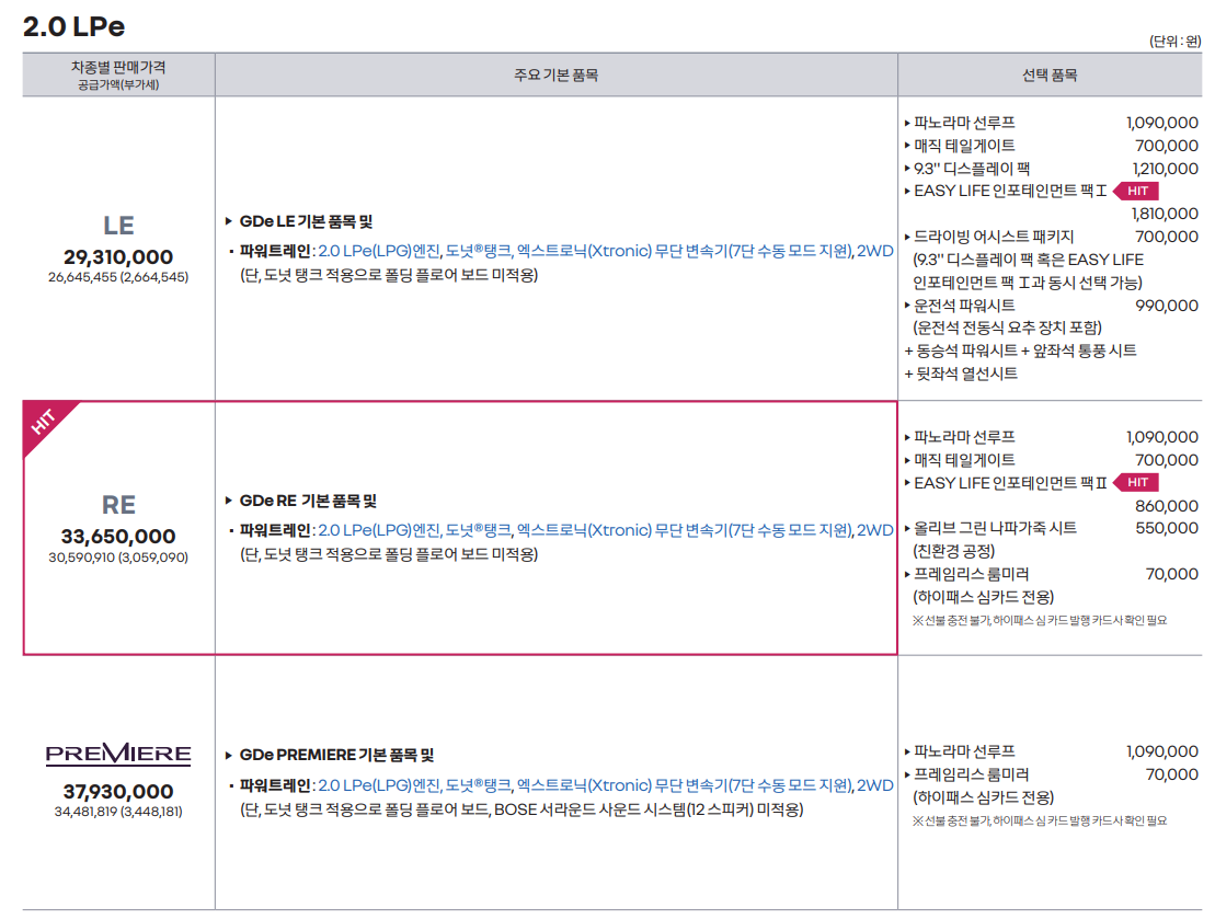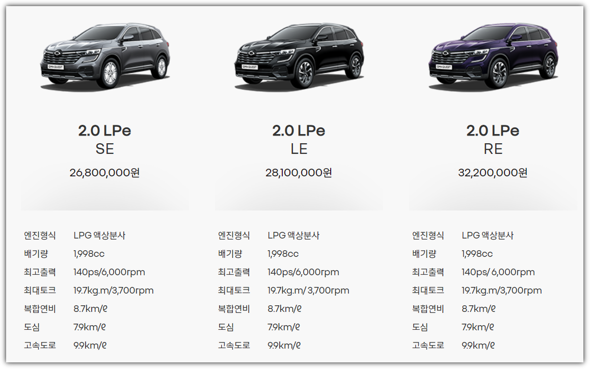 가성비 SUV의 대명사였던 QM6이기는 하지만 르노코리아 QM6 LPe 역시 올해 페이스 리프트 모델을 내놓으면서 가격이 인상됐습니다. QM6 LPG 가격표를 보면 약 100만원 정도 올랐는데요, 내외관에서 개선점이 있다는 점에서 납득할만하다는 평가입니다.